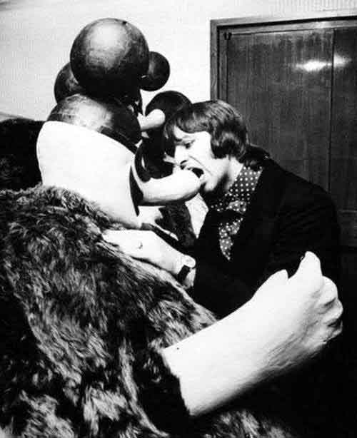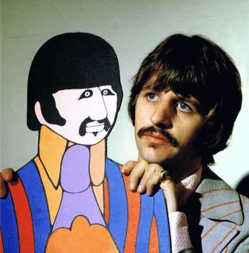 Ringo poses with his Yellow Submarine cardboard cutout counterpart.