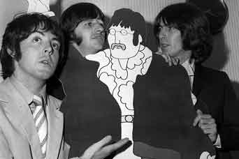 ![]() Beatles with their Yellow Submarine cardboard cutout counterpart. |